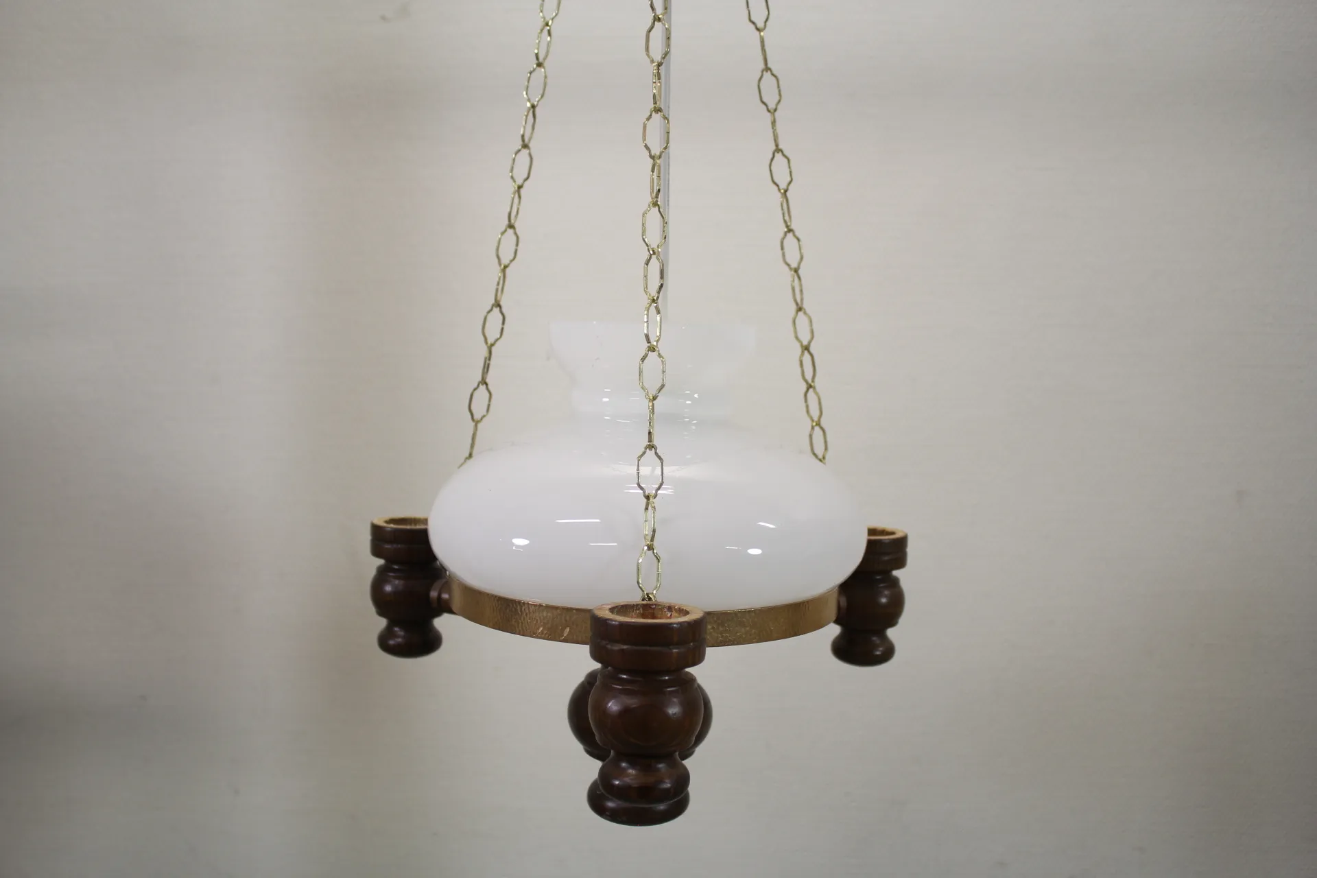 170. Taklampa i glas, trä och metall