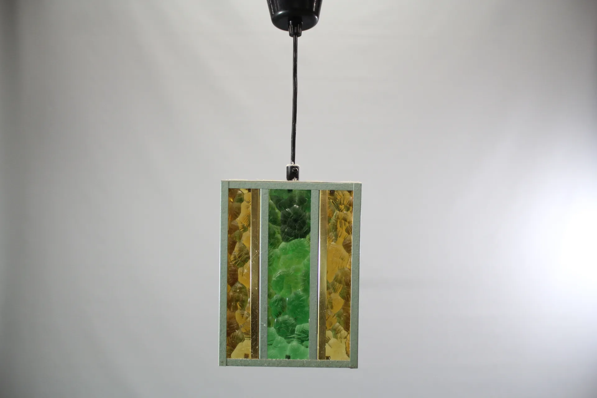 124. Taklampa i metall med blyinfattat glas