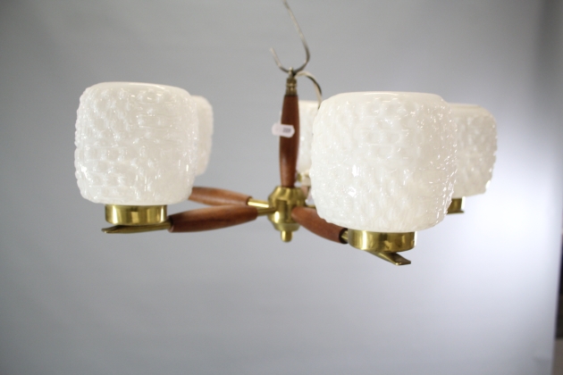209. Taklampa i teak, glas och mässing 1950/60-tal