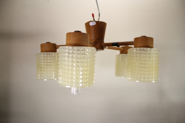 222. Taklampa i teak och glas 60-tal