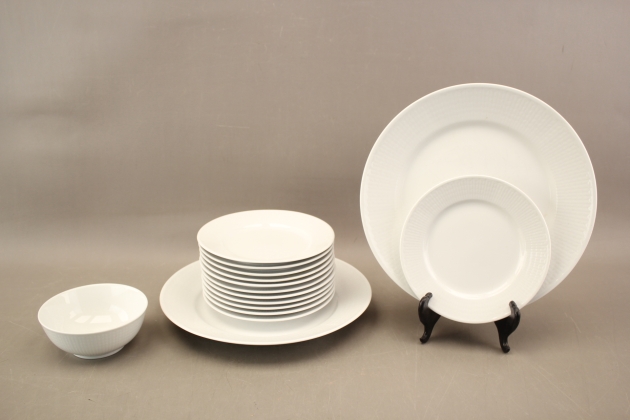 29. Tallrikar 2 st, assietter 12 st och skål Rörstrand "Swedish Grace" Louise Adelborg