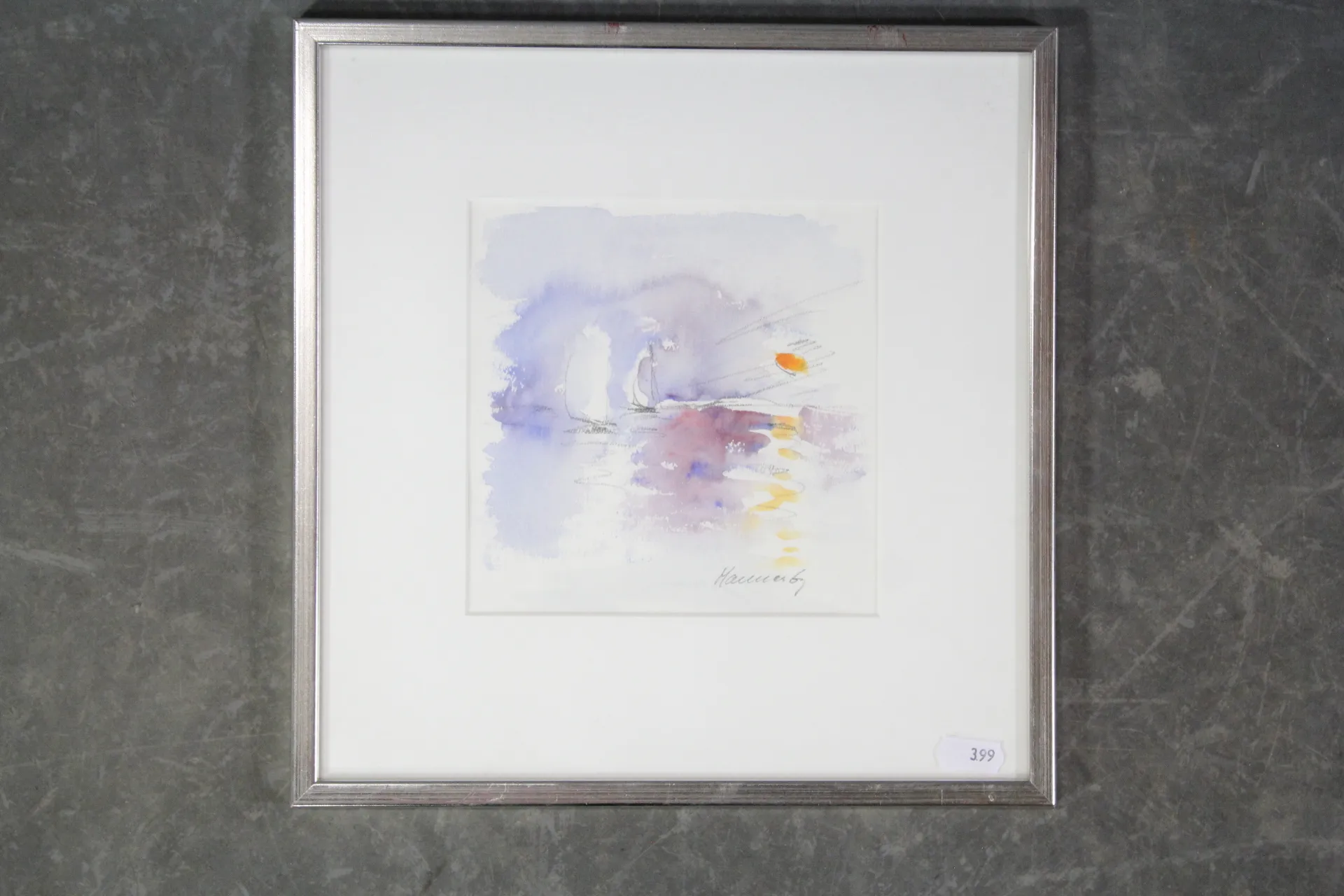 399. Tavla akvarell "Segelbåtar" sign Mannerby