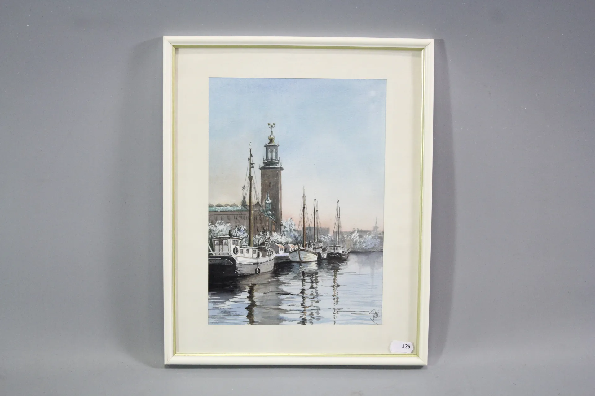 325. Tavla akvarell Titti Nyblom Gnosspelius sign Titti