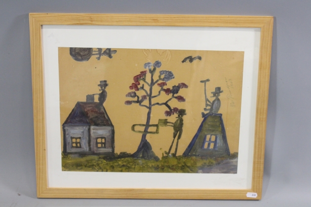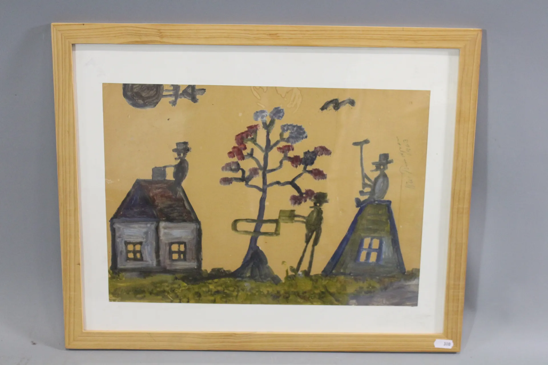 300. Tavla blandteknik Nils "Björnjägaren" Rune Rundgren sign Nils Rune Rundgren 1963