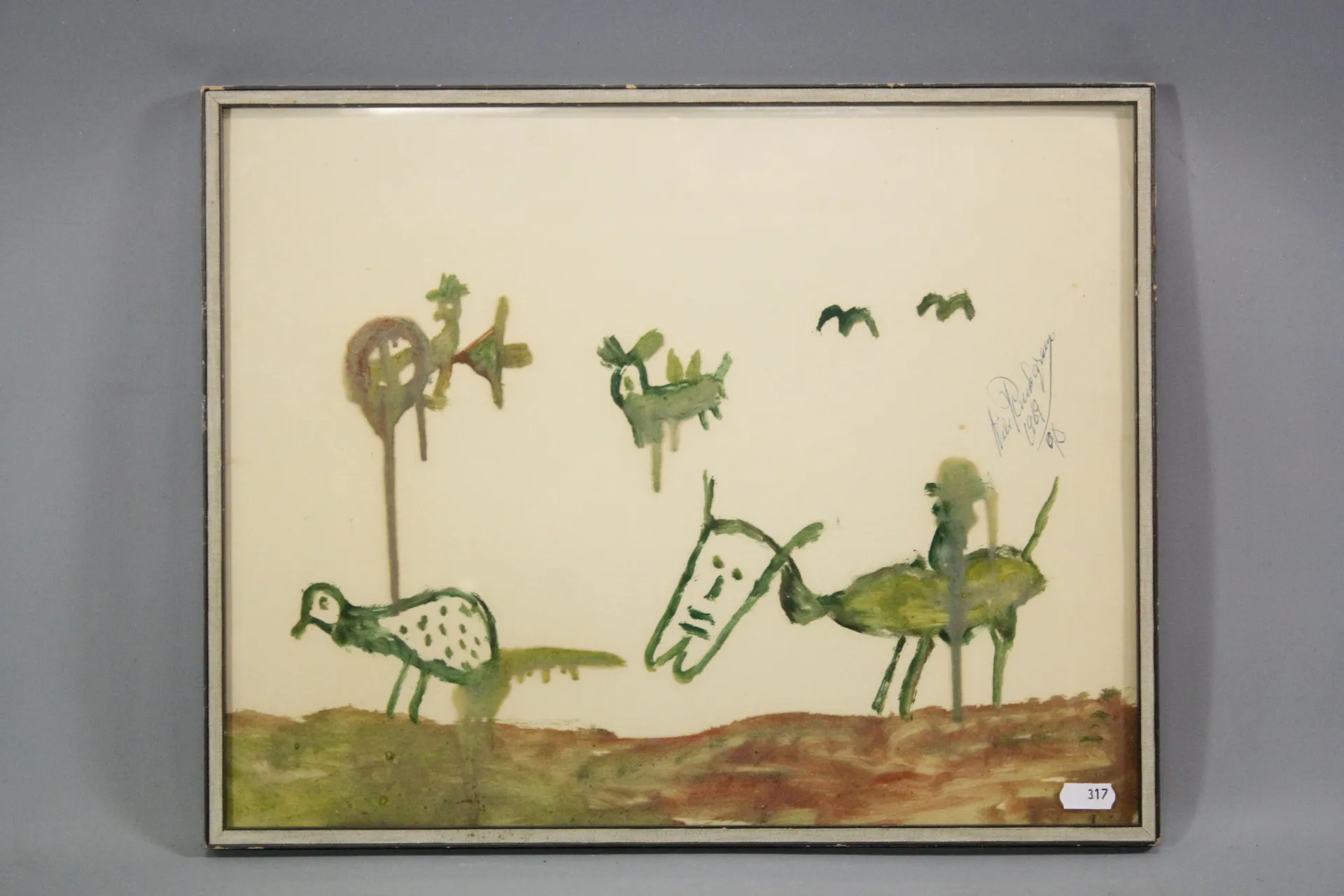 317. Tavla blandteknik Nils "Björnjägaren" Rune Rundgren sign Nils Rune Rundgren 1969