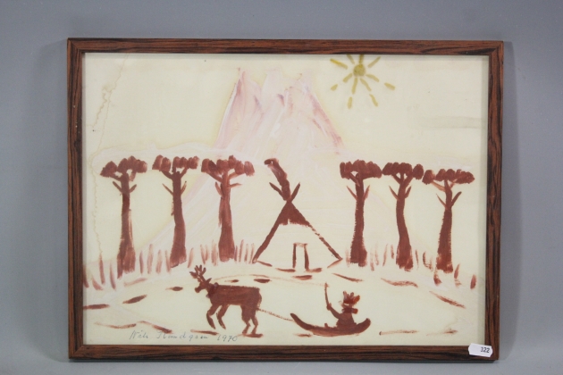 322. Tavla blandteknik Nils "Björnjägaren" Rune Rundgren sign Nils Rune Rundgren 1970