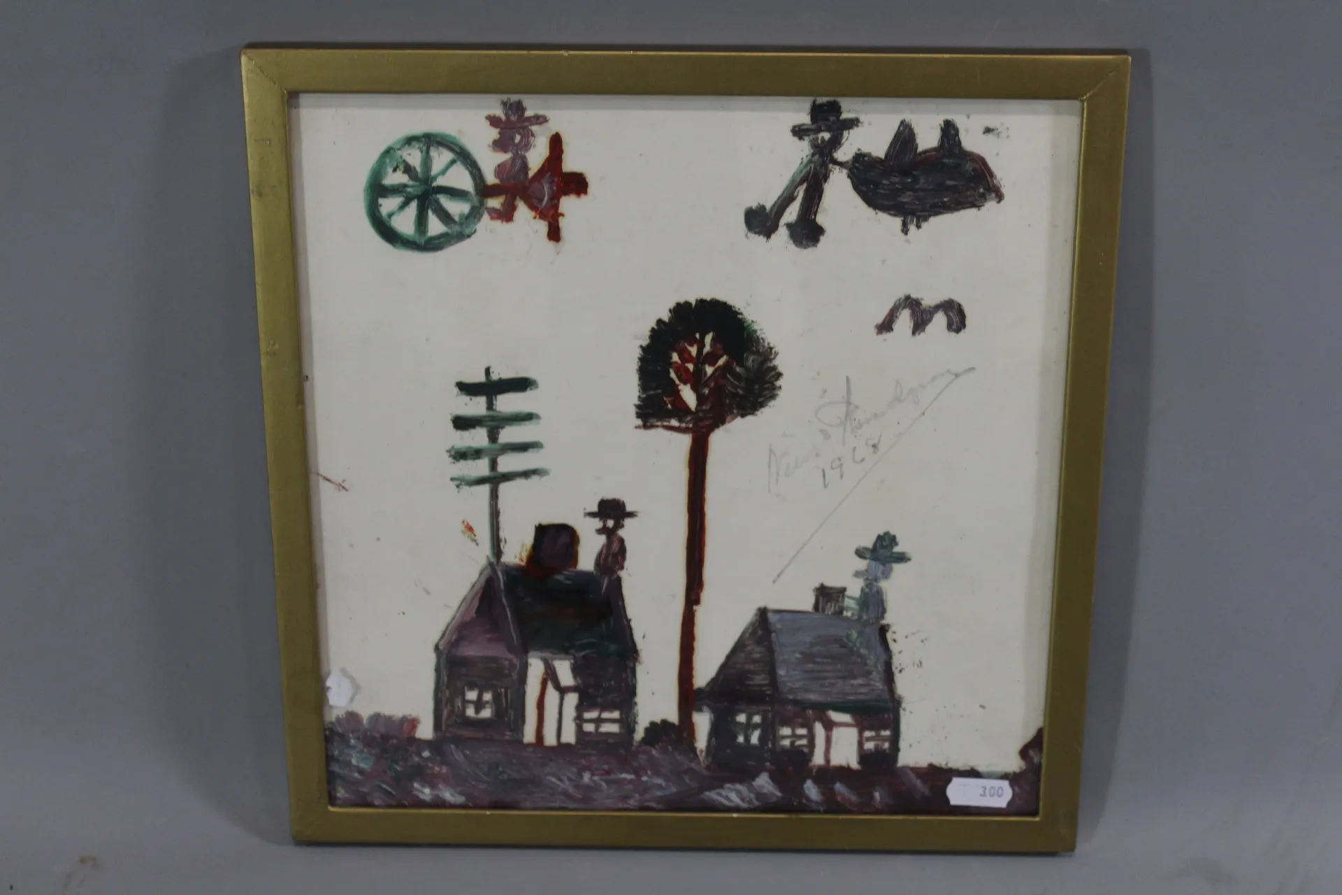 300. Tavla blandteknik på papper sign Nils Rundgren 1968