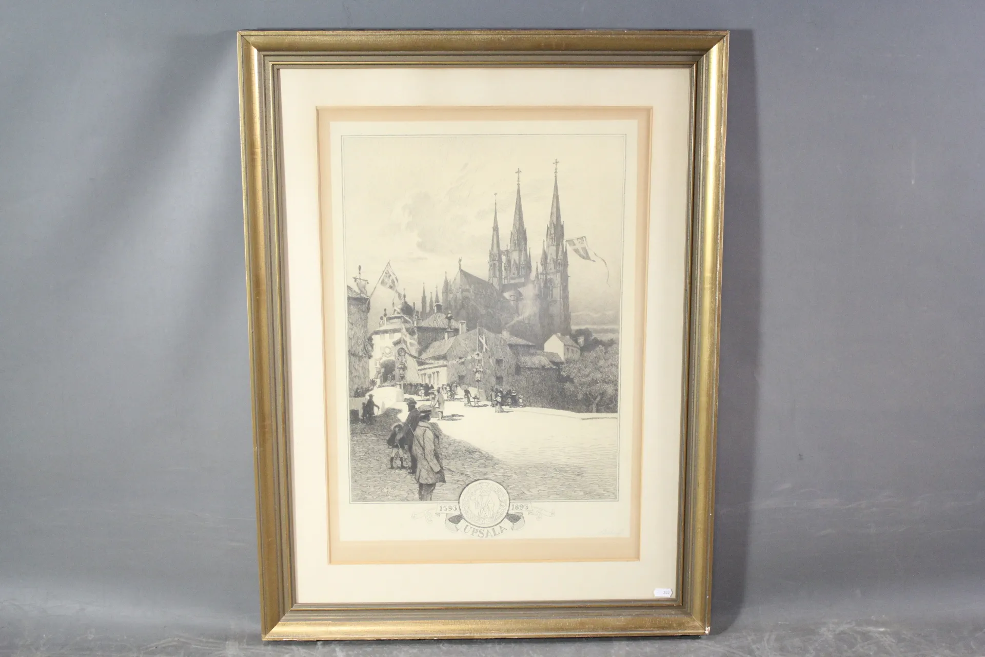 303. Tavla etsning "Upsala" sign Ferdinand Boberg