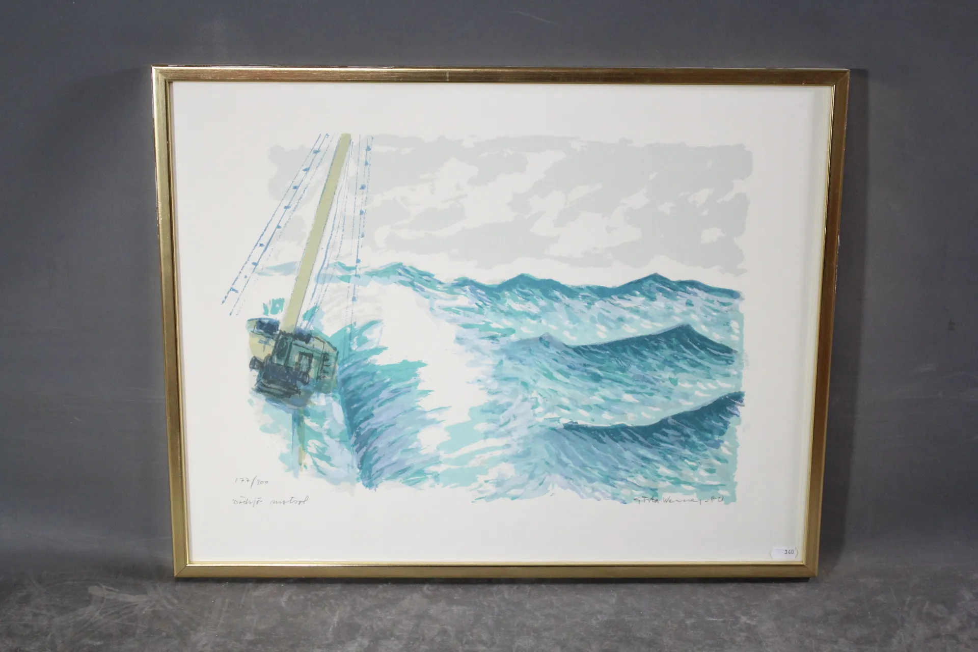 340. Tavla färglitografi Gösta Werner 177/300 -80