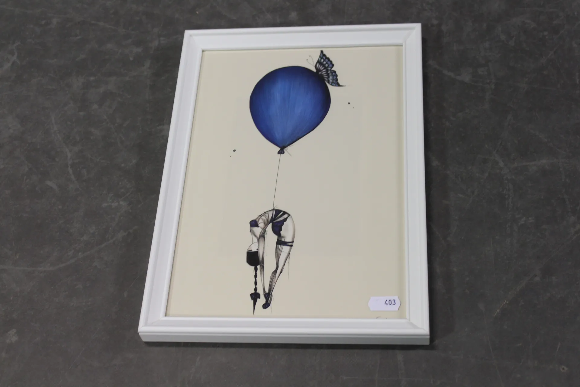 403. Tavla färglitografi "Kvinna under ballong" sign Louise Thomine Köpenhamn