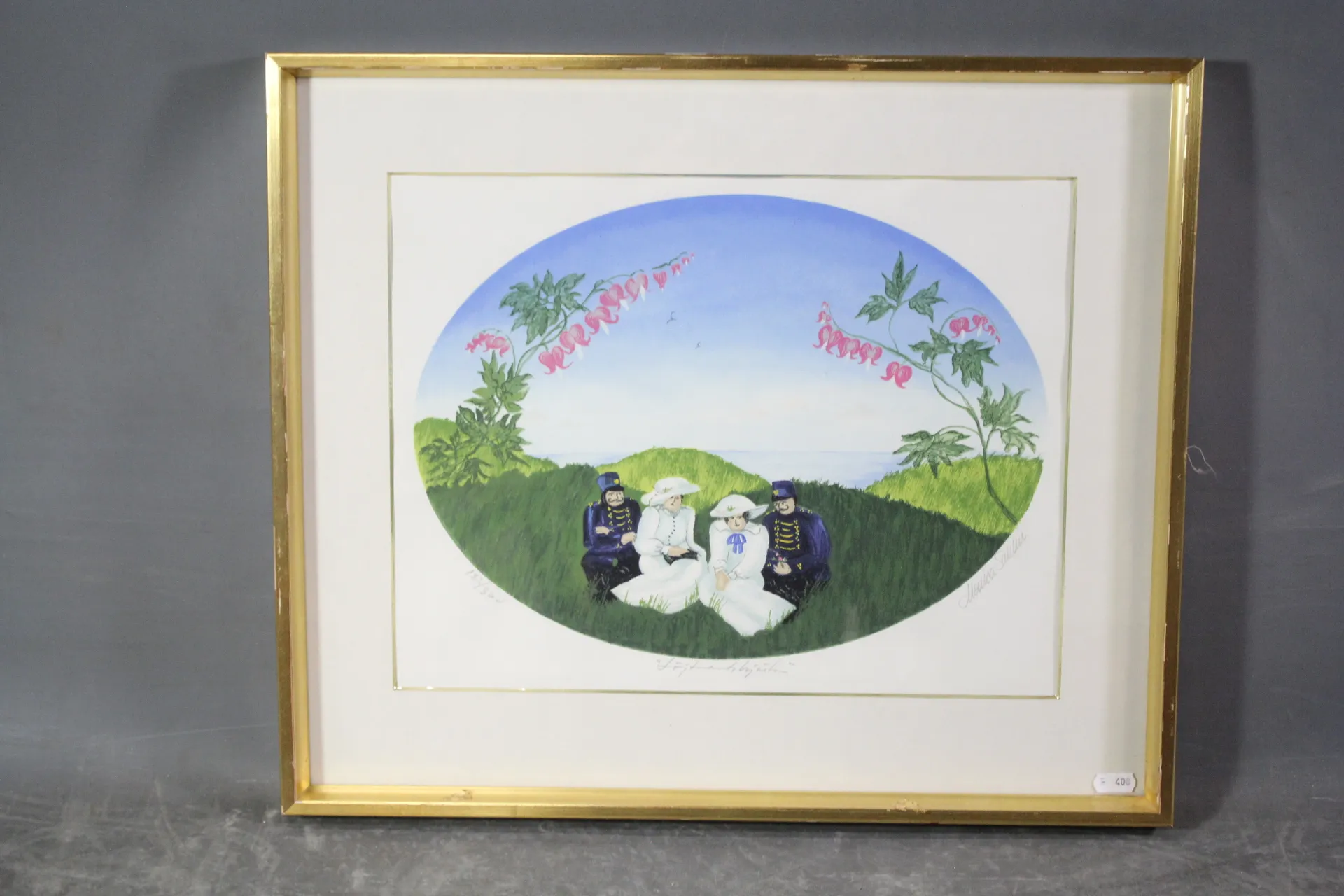 408. Tavla färglitografi "Löjtnantshjärtan" sign Monica Sahlin 182/360