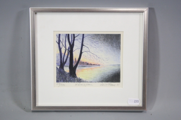295. Tavla färglitografi "Mälarafton" sign Hasse Froom -85, 258/500