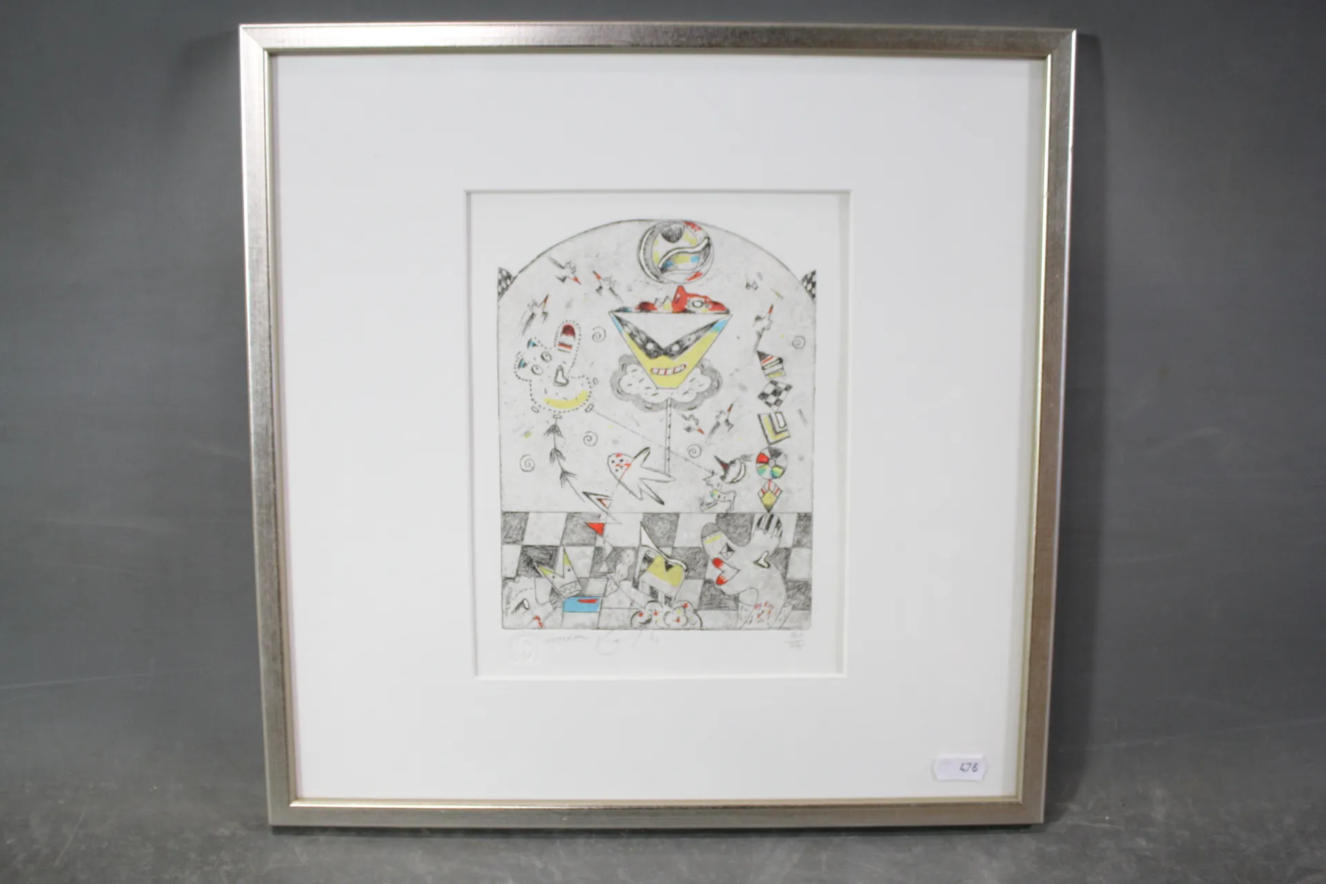 476. Tavla färglitografi "Masken" sign Jorgo Krallis 187 / 295