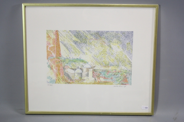 420. Tavla färglitografi "Mot Riddarholmen" sign Bertil Öhlund 3/325