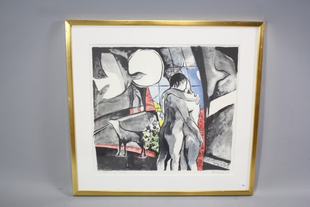392. Tavla färglitografi "Omfamningen" Edlef Ter Haar Romeny signerad 5/300