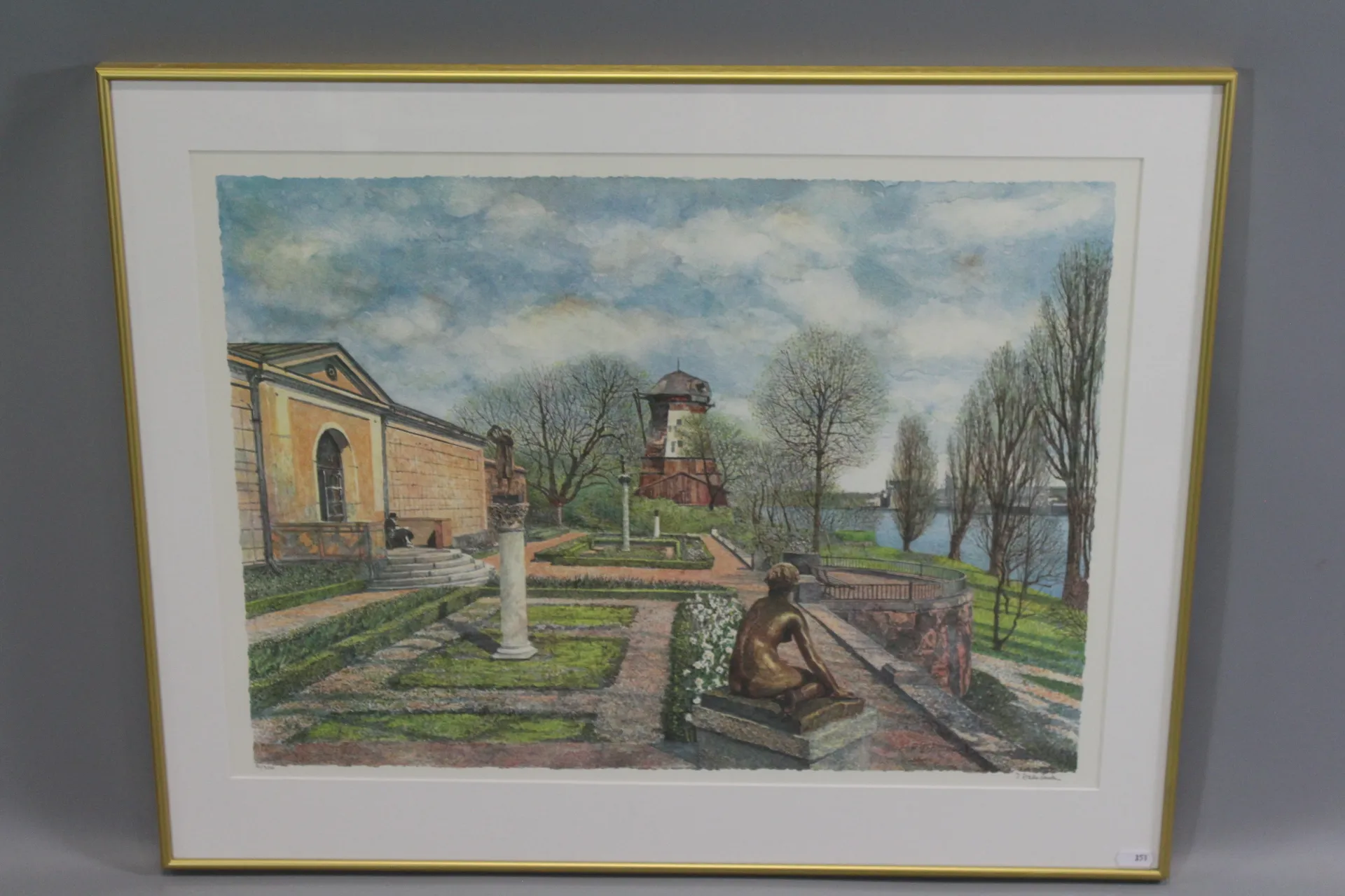 351. Tavla färglitografi Pietro Dalla Santa sig P Dalla Santa