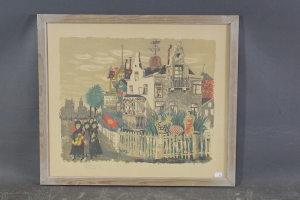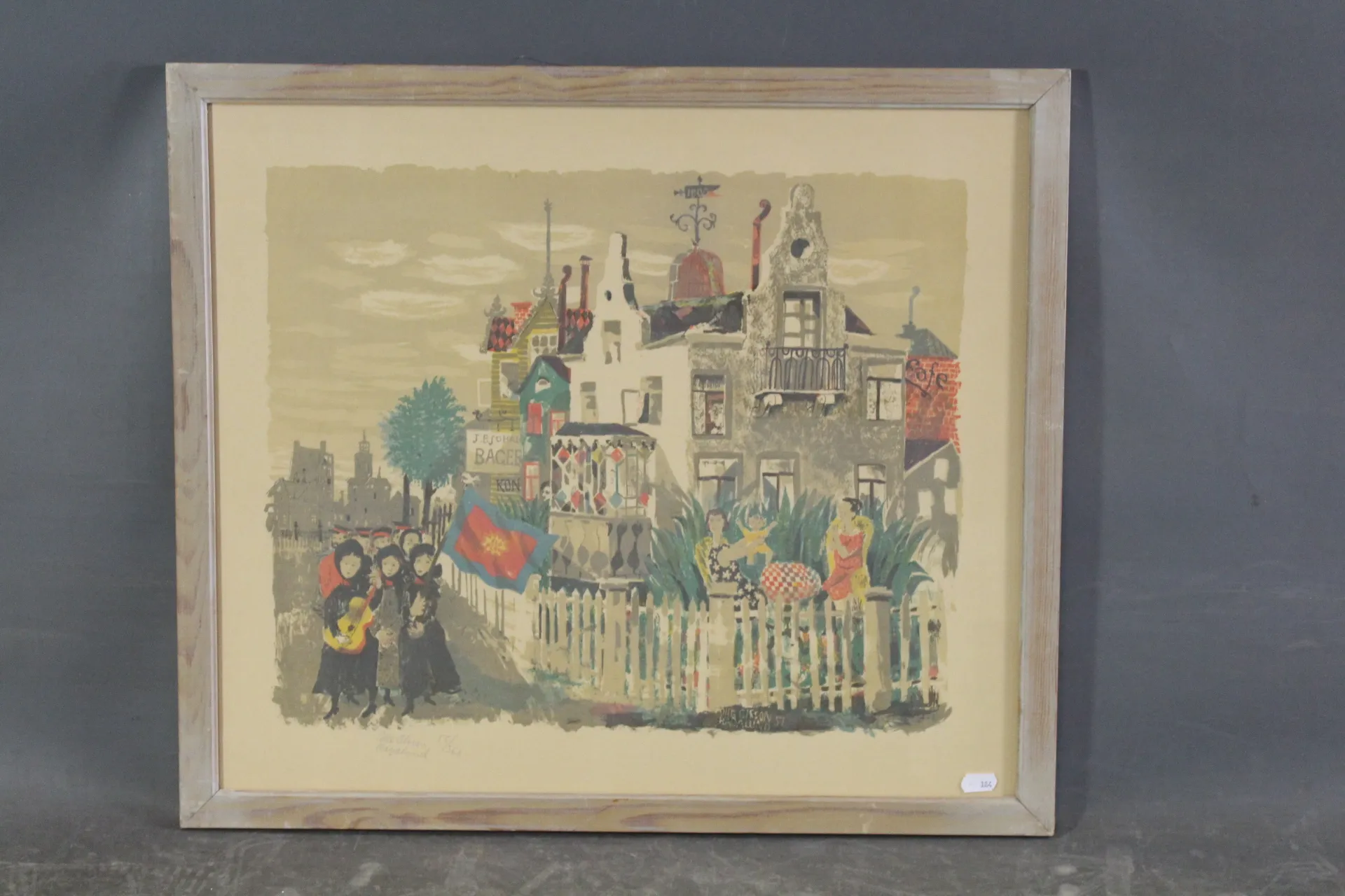 384. Tavla färglitografi sign Olle Olsson Hagalund 55/360