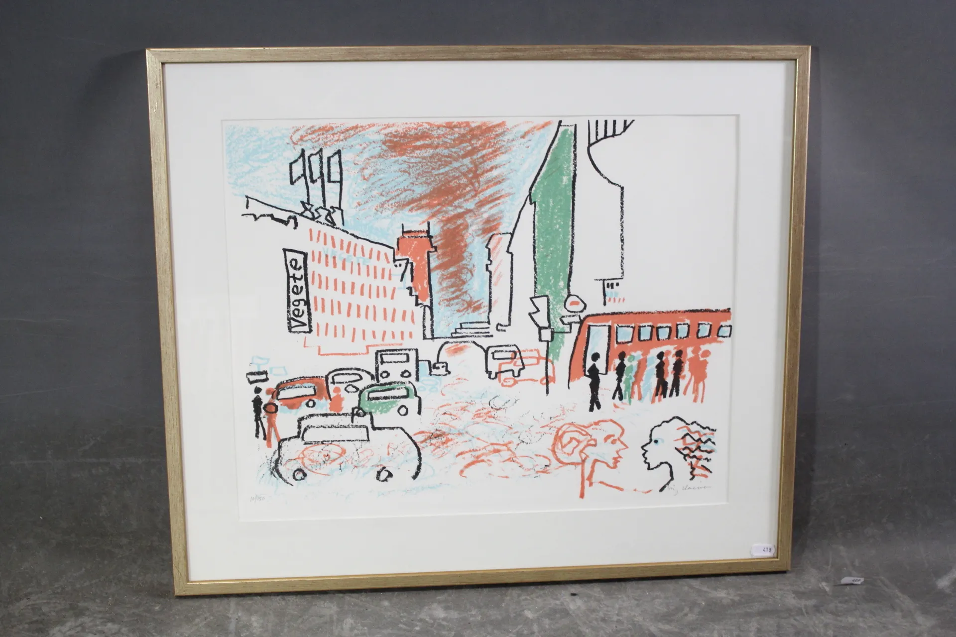 418. Tavla färglitografi sign Stig "Slas" Claesson 10/150