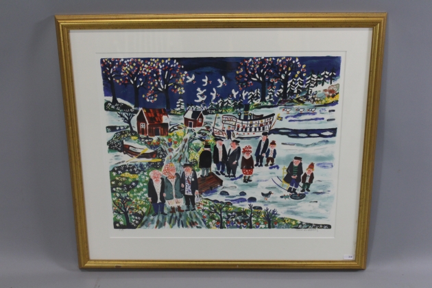 346. Tavla färglitografi sign Sven Lidberg E.A