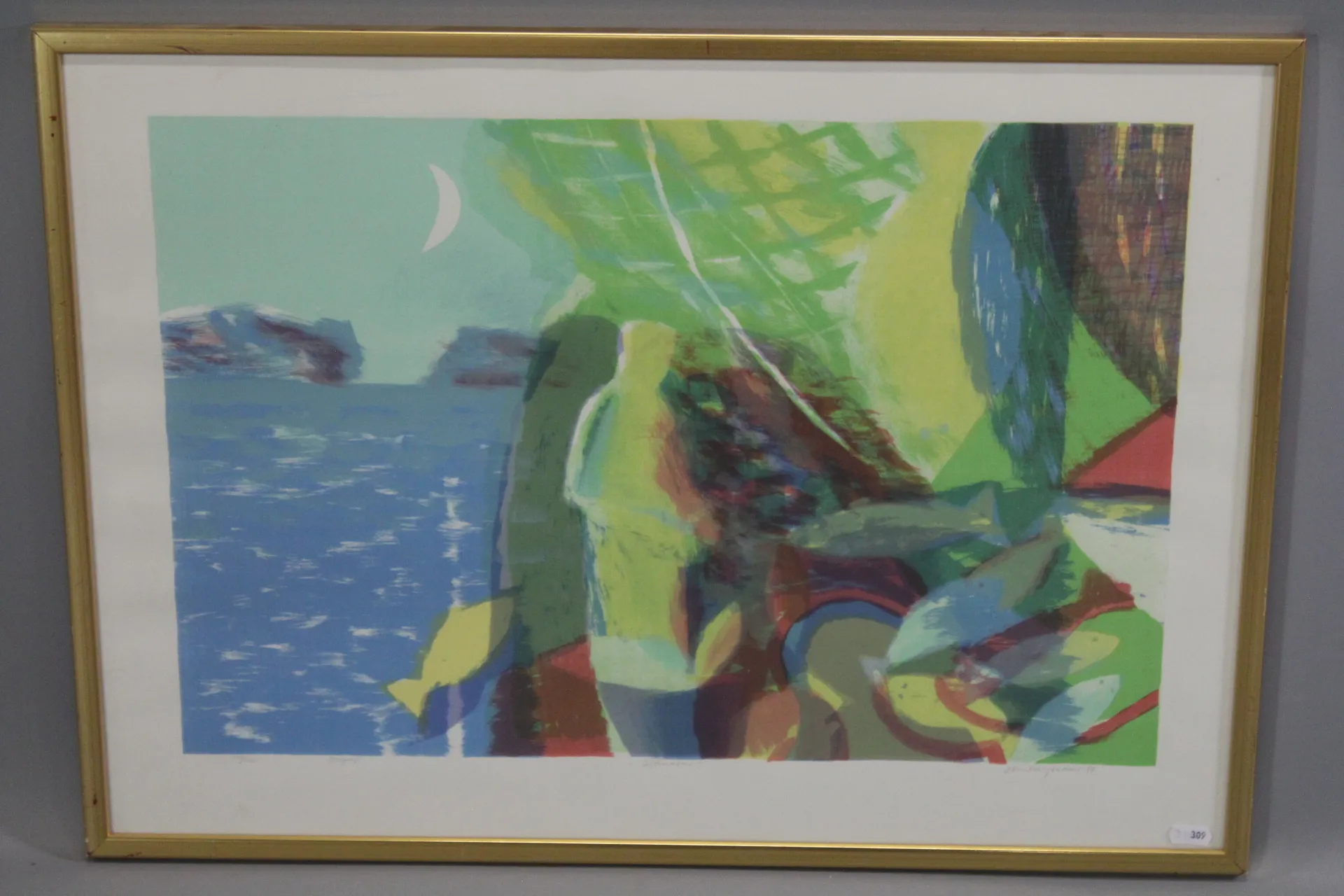 309. Tavla färglitografi "Sjönatur" sign Jon Reykdal -88, 164/225