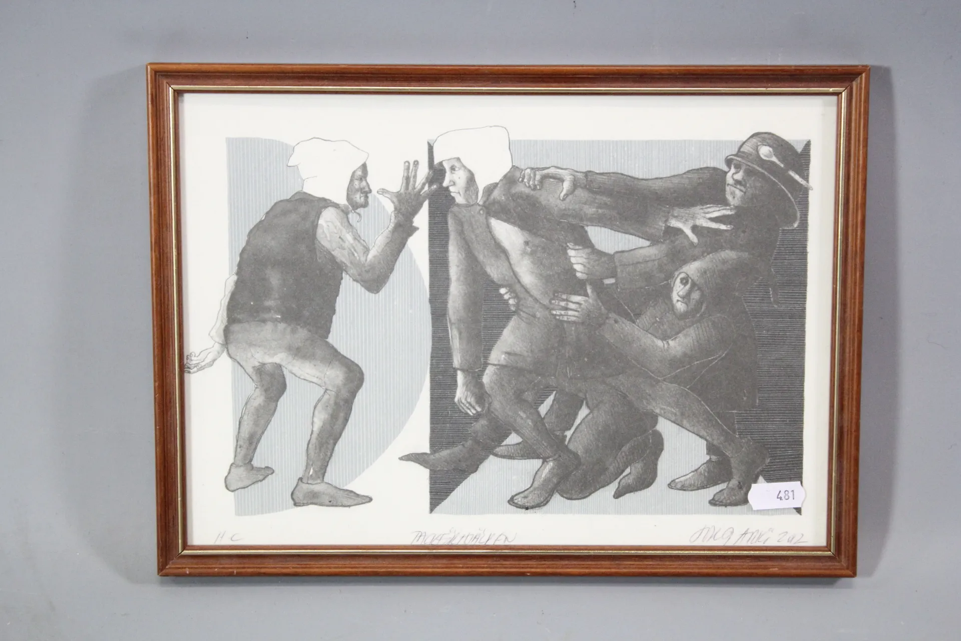 481. Tavla färglitografi "Tack för hjälpen" sign Jordi Arkö