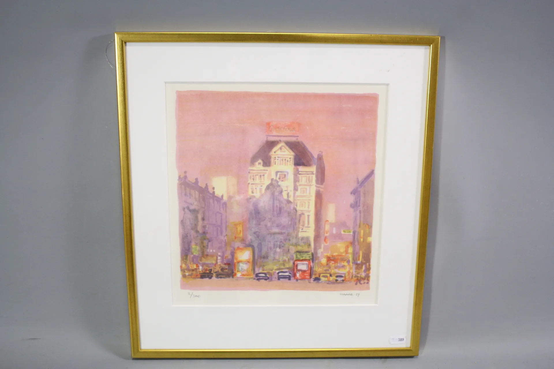 389. Tavla färglitografi "Eftermiddagssol Bryssel" Sixten Haage sign Haage -89, 2/300
