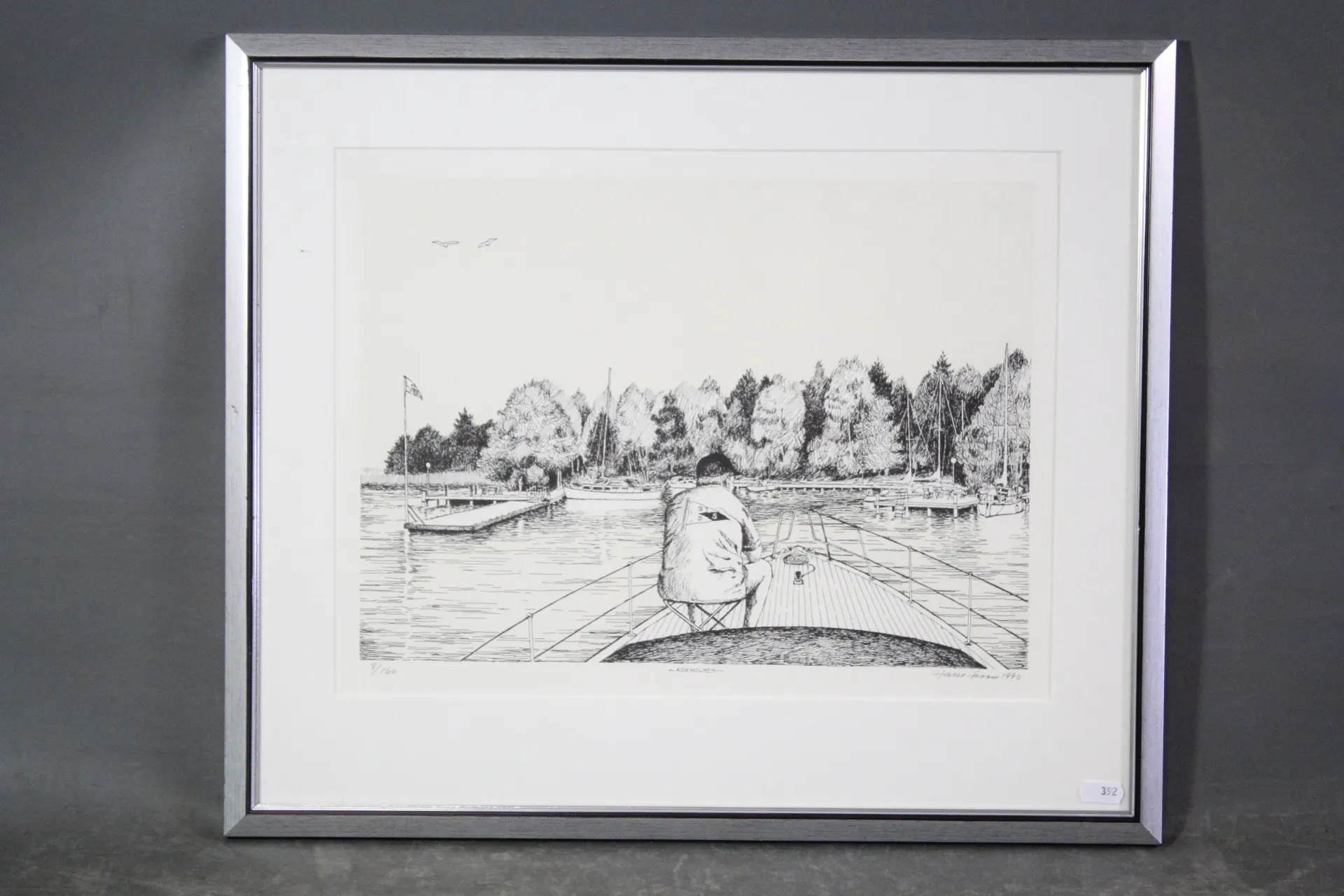 392. Tavla litografi "Askholmen" sign Hasse Froom -1990, 8/160