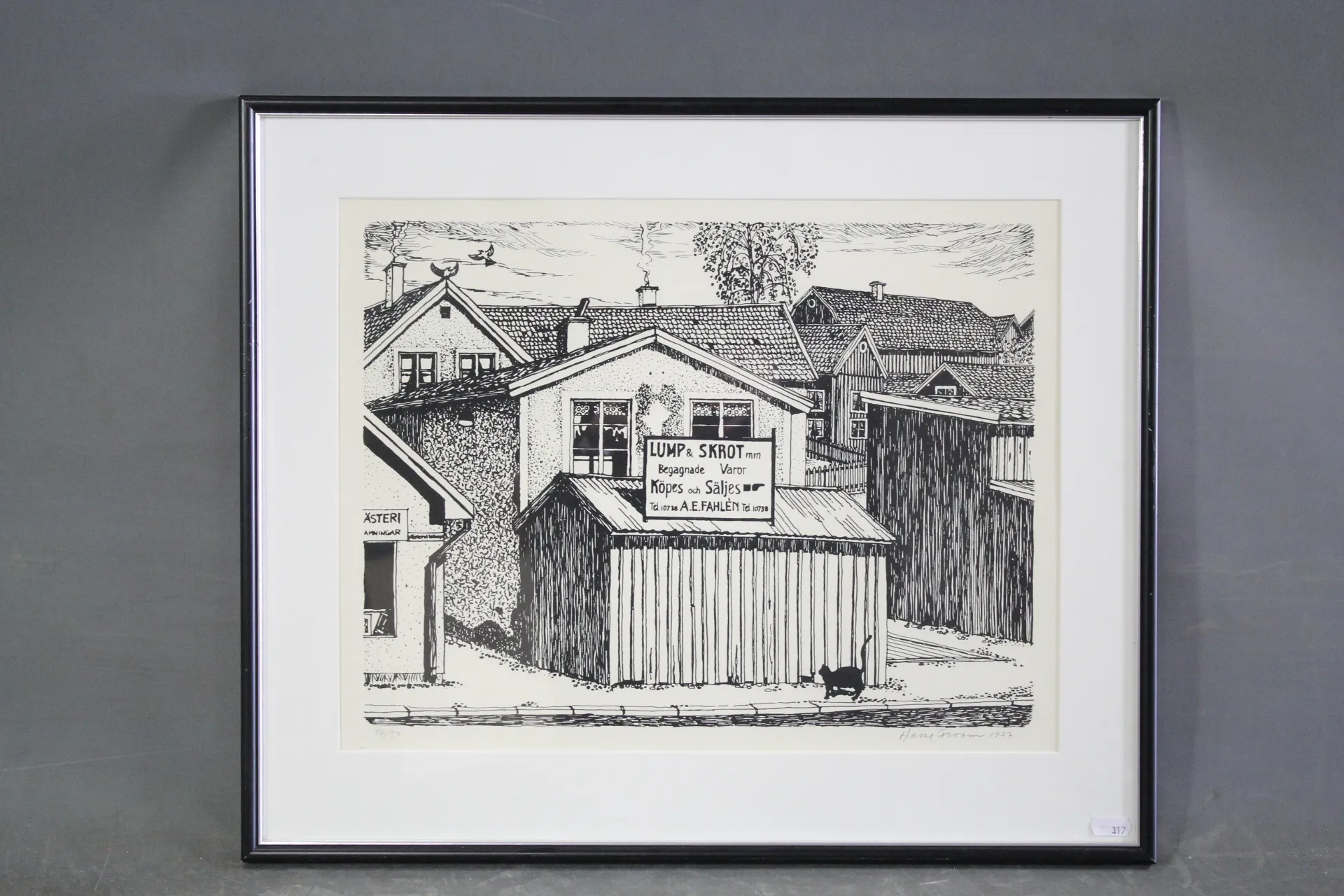 394. Tavla litografi sign Hasse Froom -77 46/50