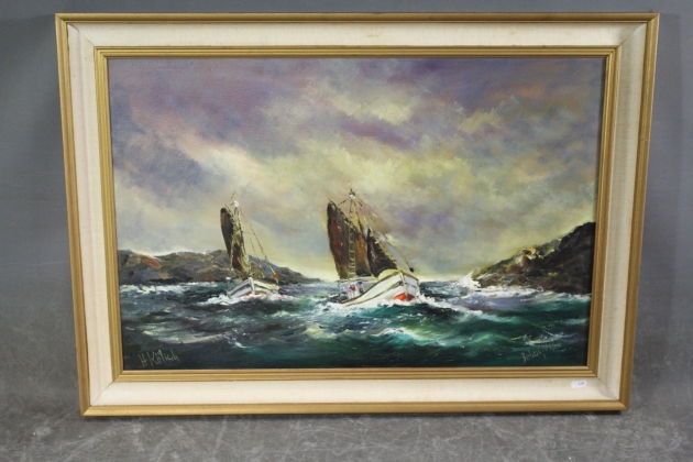 430. Tavla olja på duk "Bohusfiske" sign H Köllisch