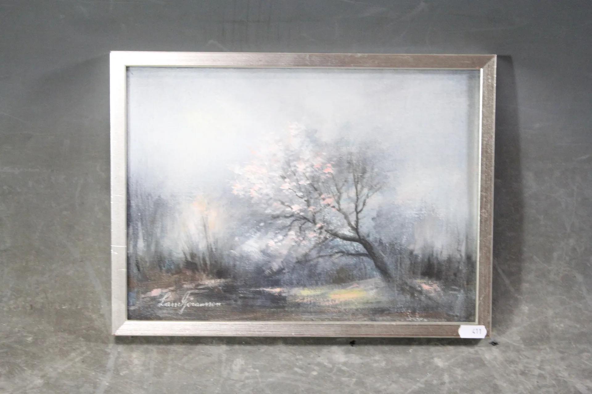 411. Tavla olja på duk "Ett Vilt Äppelträd" sign Lasse Göransson Kungsör