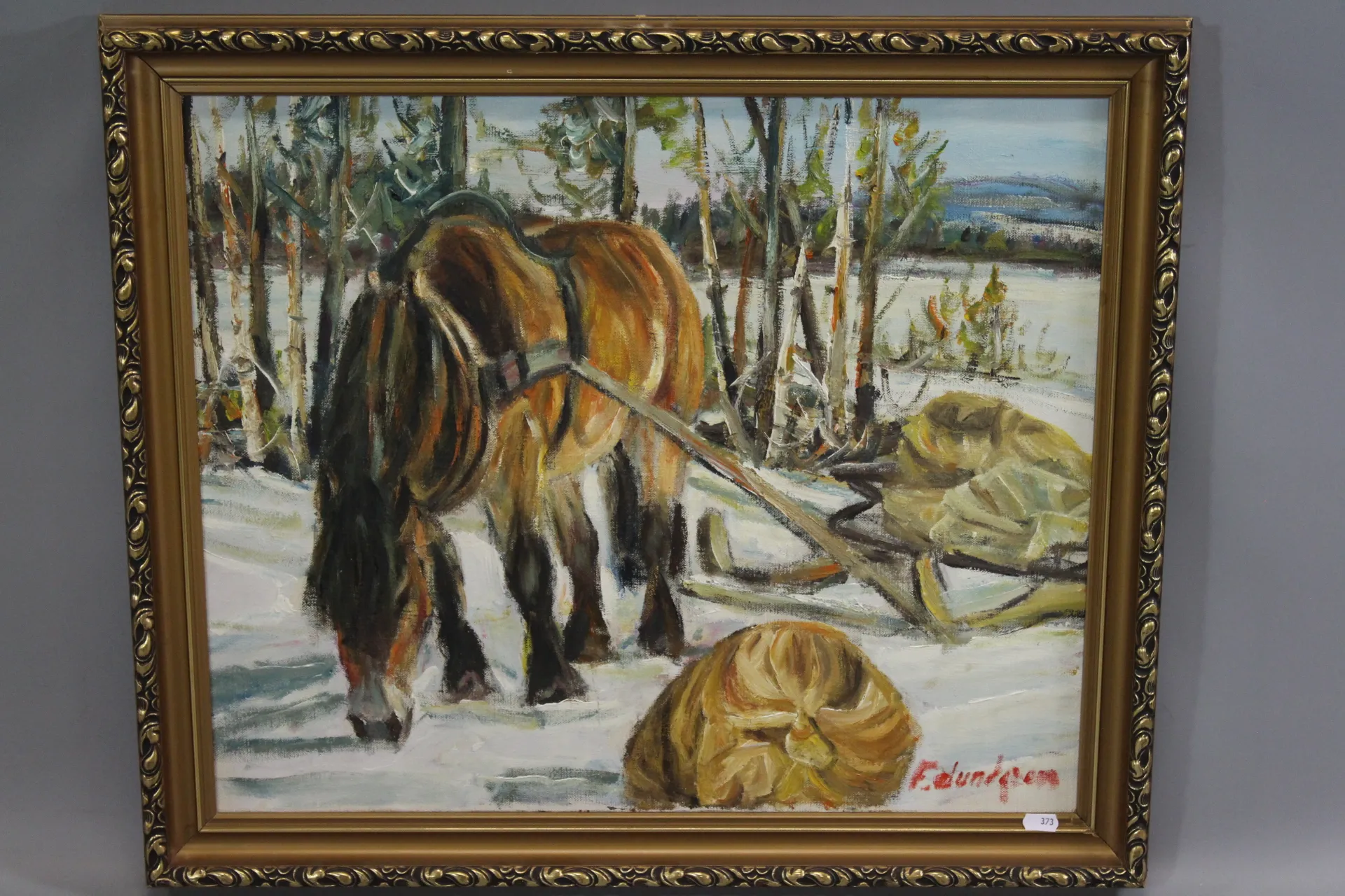 373. Tavla olja på duk Fred Lundgren sign F Lundgren