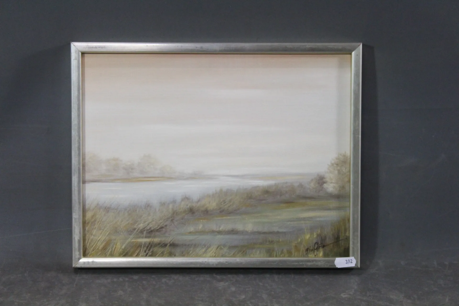 392. Tavla olja på duk "Höst vid Arbogaån" sign Pia Göransson Kungsör -1990