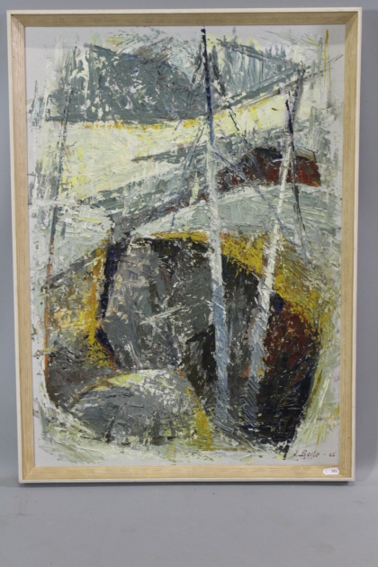 383. Tavla olja på duk "Stenblock" Ingrid Bade sign I Bade -65