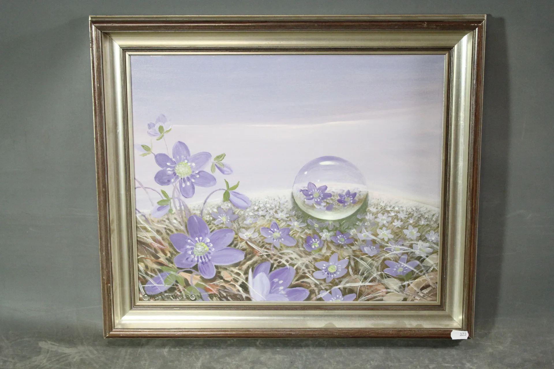 323. Tavla olja på duk "Våröga" sign Olle Eriksson Grums