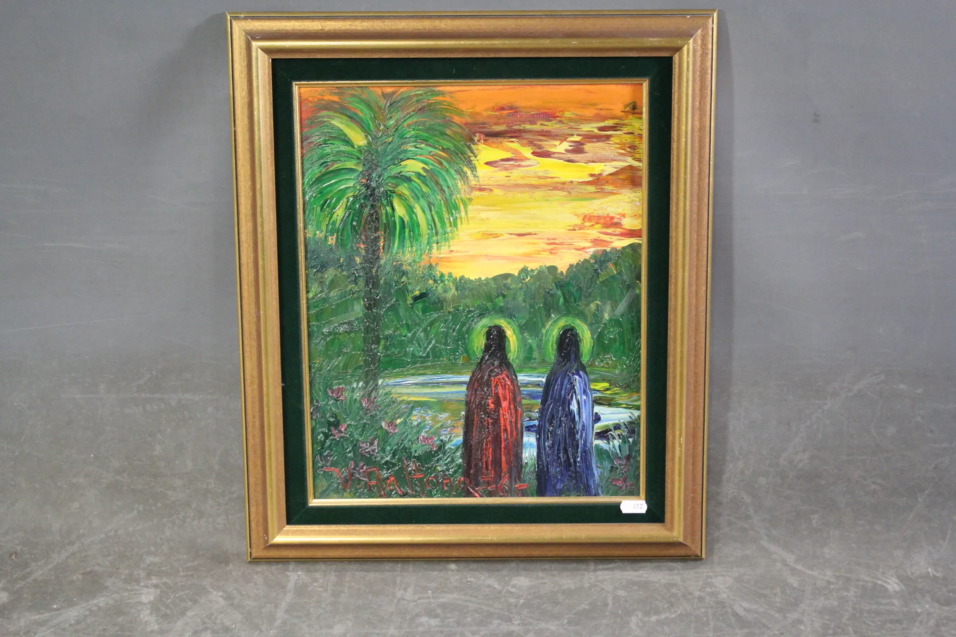 412. Tavla olja på duk Veikko Aaltona sign V Aaltona -76