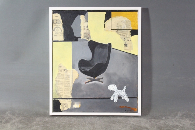 307. Tavla olja på duk/collage Margareta Gelles sign M Gelles