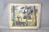 442. Tavla olja på pannå "Skogsmark med kråkor i träd" Janus Jahn sign Jahn