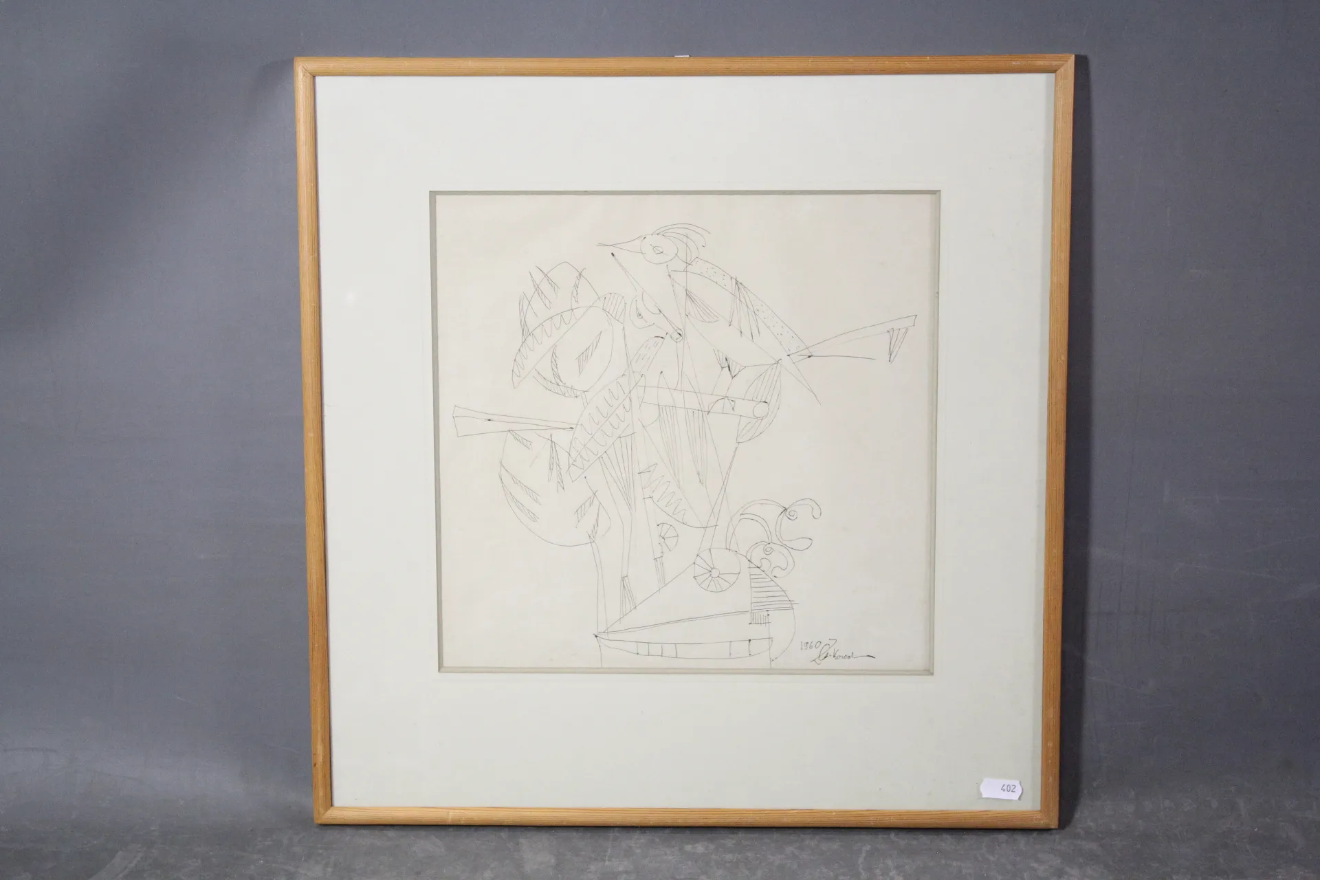 402. Tavla teckning signerad och daterad 1960