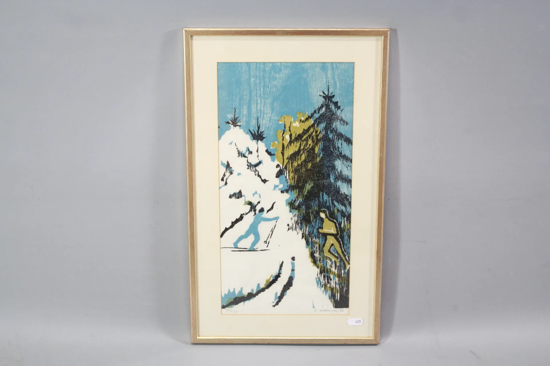 455. Tavla träsnitt Kurt Ullberger sign K Ullberger -89, 82/220