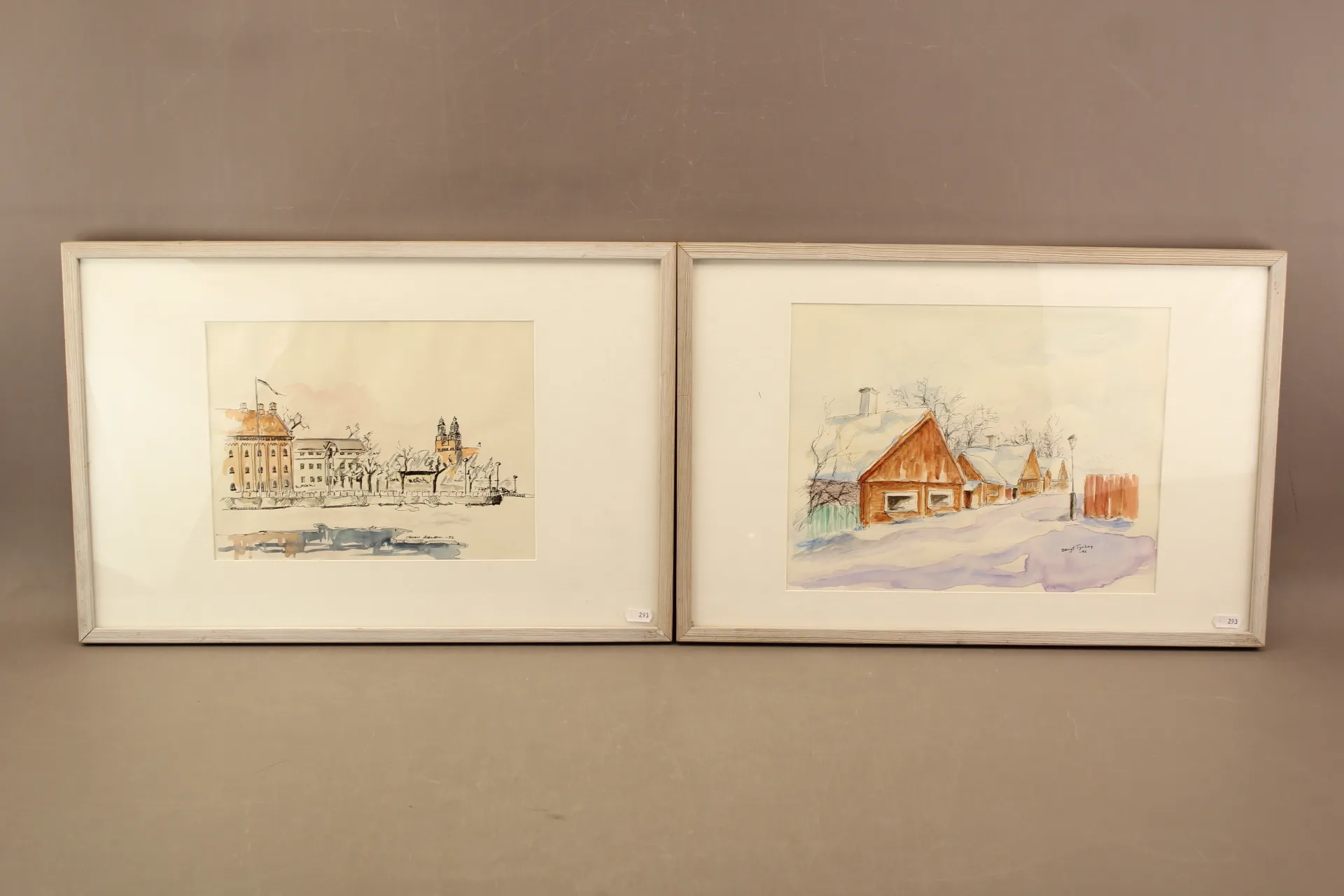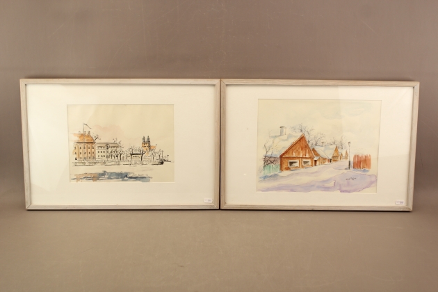 293. Tavlor akvarell "Eskilstunamotiv" 2 st bla Bengt Tyrhag