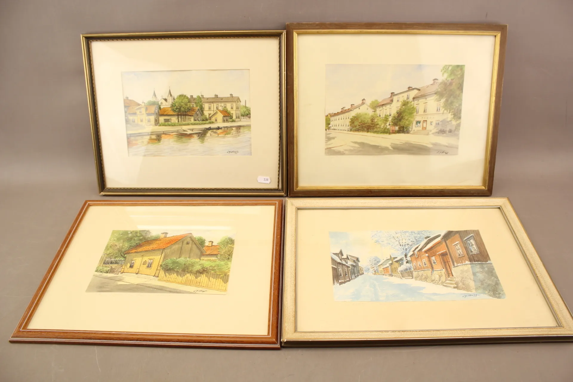 338. Tavlor akvareller Eskilstunamotiv Einar Hillberg 4 st