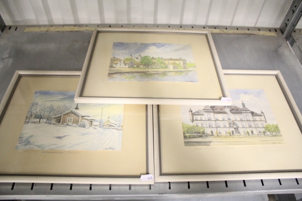 446. Tavlor akvareller sign E. Hillberg 3 st