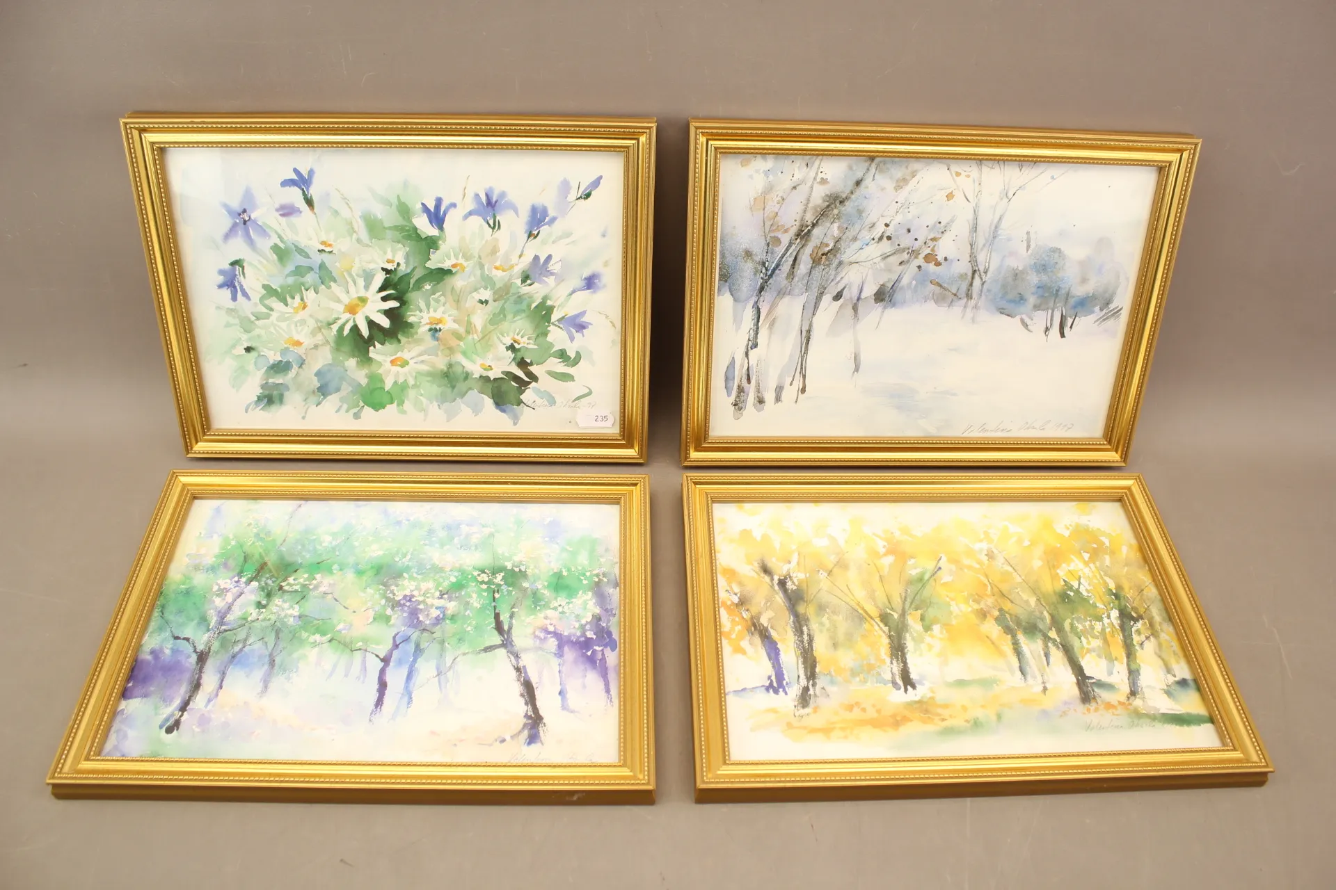 235. Tavlor akvareller sign Valentina Oksala -97, 4 st