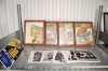 464. Tavlor med sedlar 4 st, oinramade sportbilder, mm
