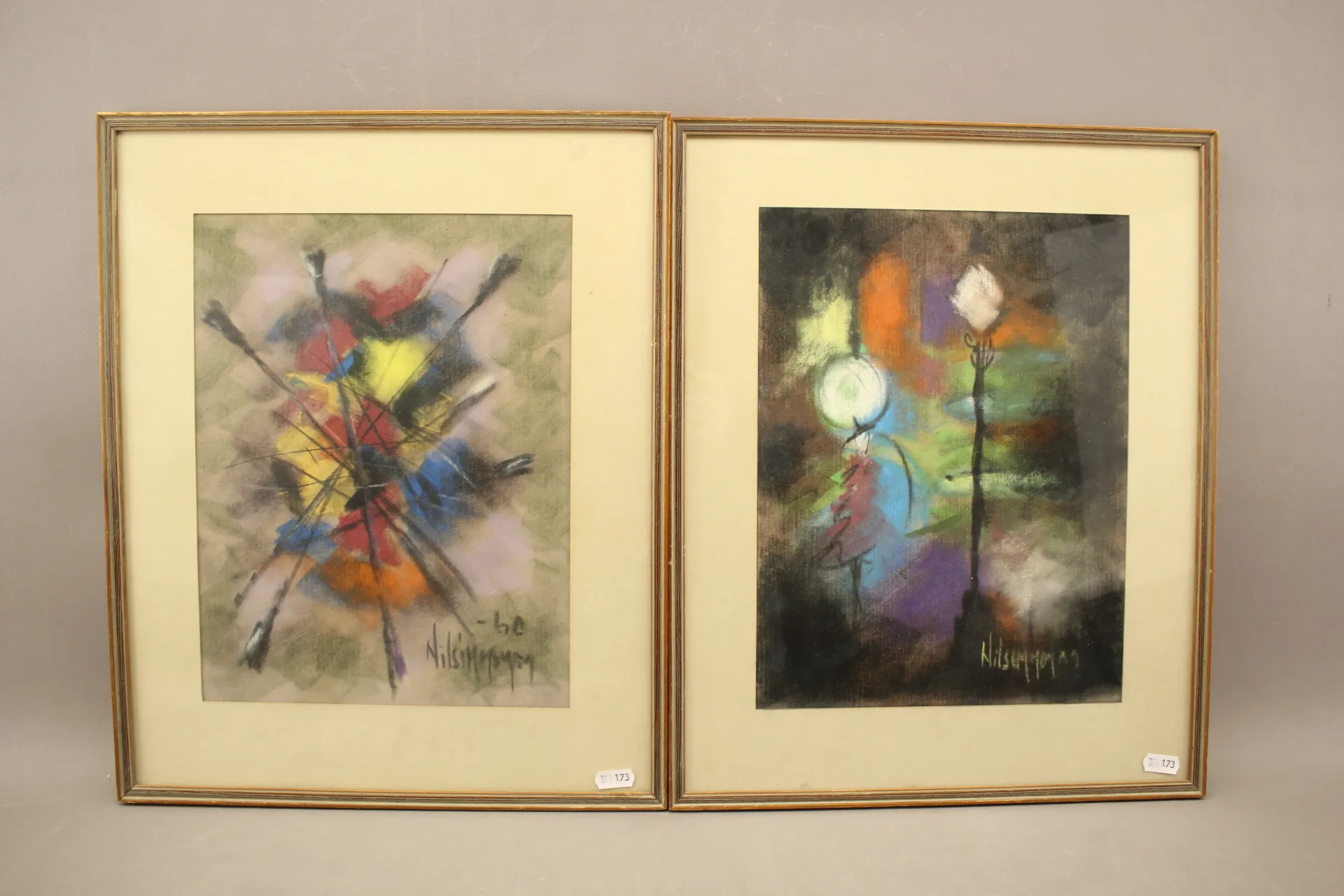 173. Tavlor pastell sign Nils Immonen -60, 2 st