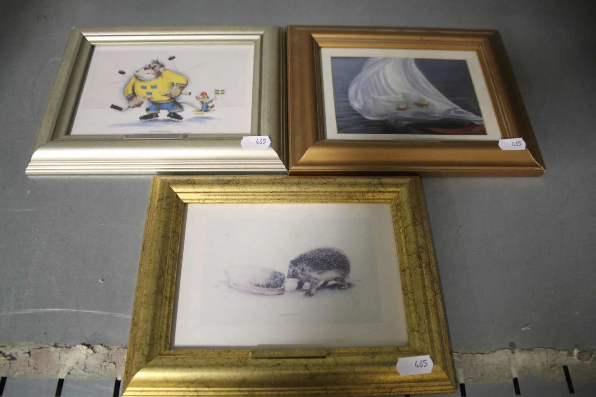 465. Tavlor tryck 3 st bla Lasse Åberg
