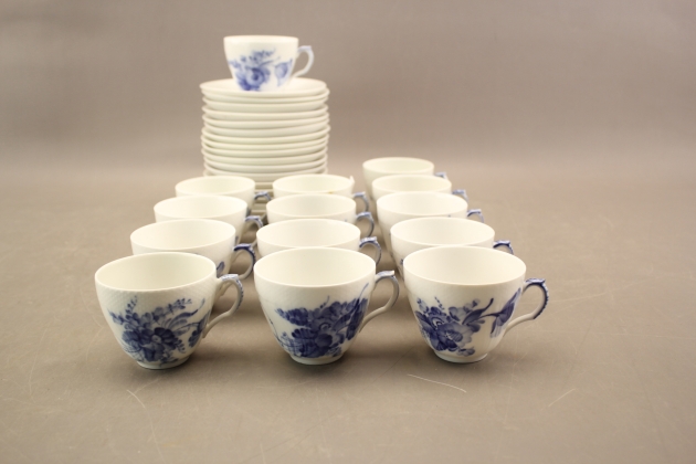 163. Tekoppar med fat "Blå Blomst" Royal Copenhagen 31 delar