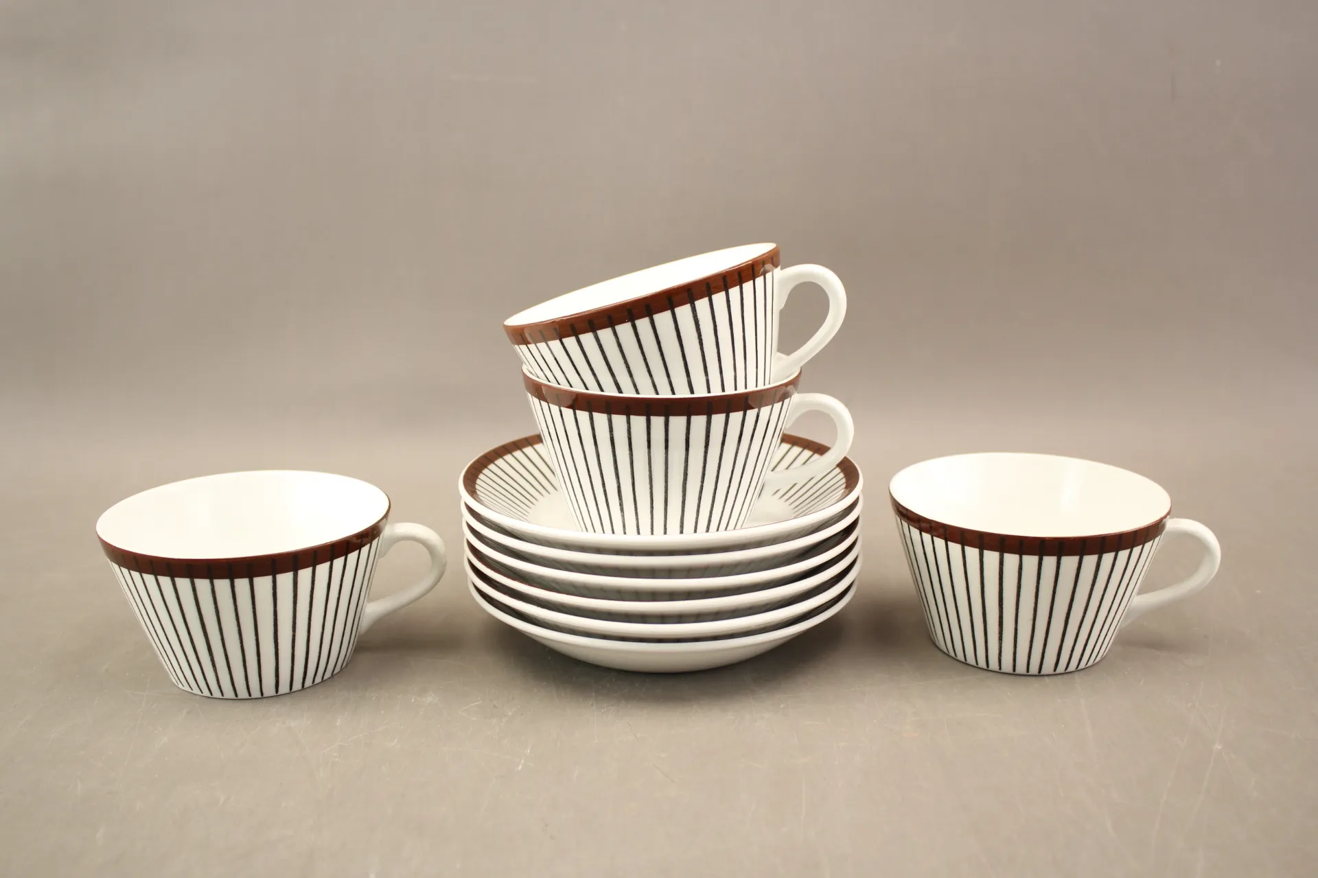 125. Tekoppar med fat Gustavsberg "Spisa ribb" Stig Lindberg 10 delar