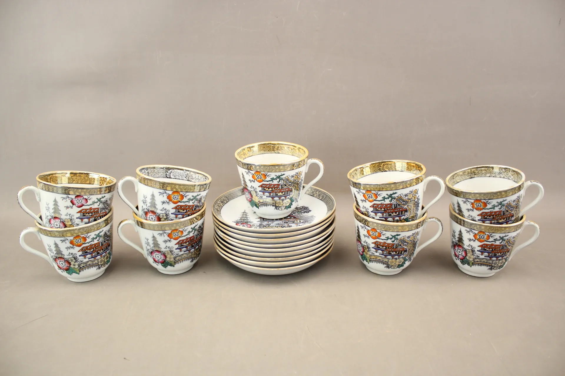 235. Tekoppar med fat "Japan" 19 delar