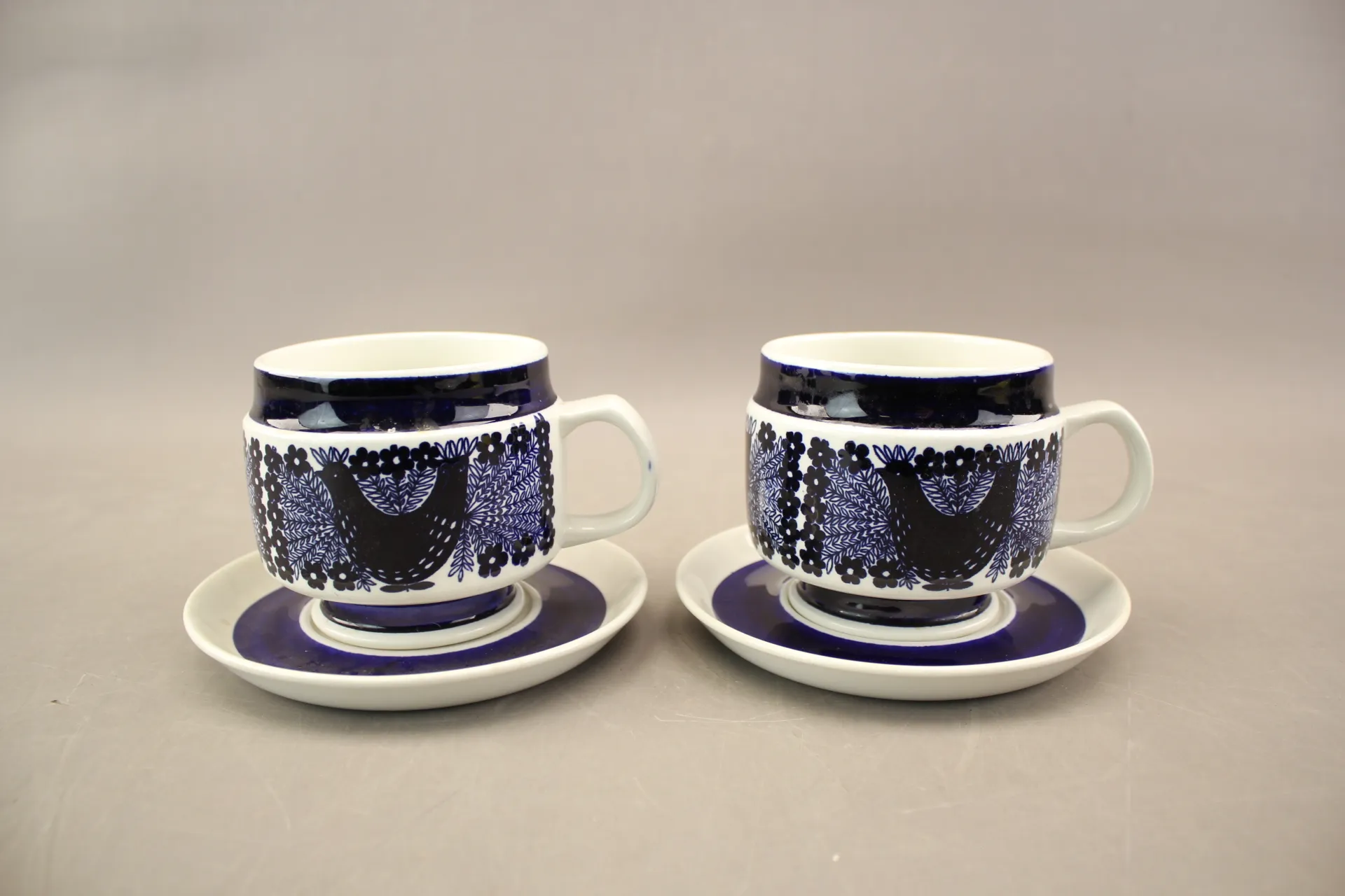 138. Tekoppar med fat "Sinilintu" Raija Uosikkinen Arabia 4 delar